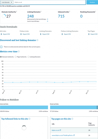 | SEOMoz DA/PA | Majestic TF/CF | Ahrefs DR/UR | Total Backlinks | Referring IPs | Referring Domains | First WA Record |