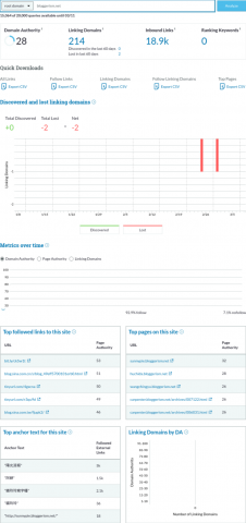 | SEOMoz DA/PA | Majestic TF/CF | Ahrefs DR/UR | Total Backlinks | Referring IPs | Referring Domains | Trust BL | First WA Record |