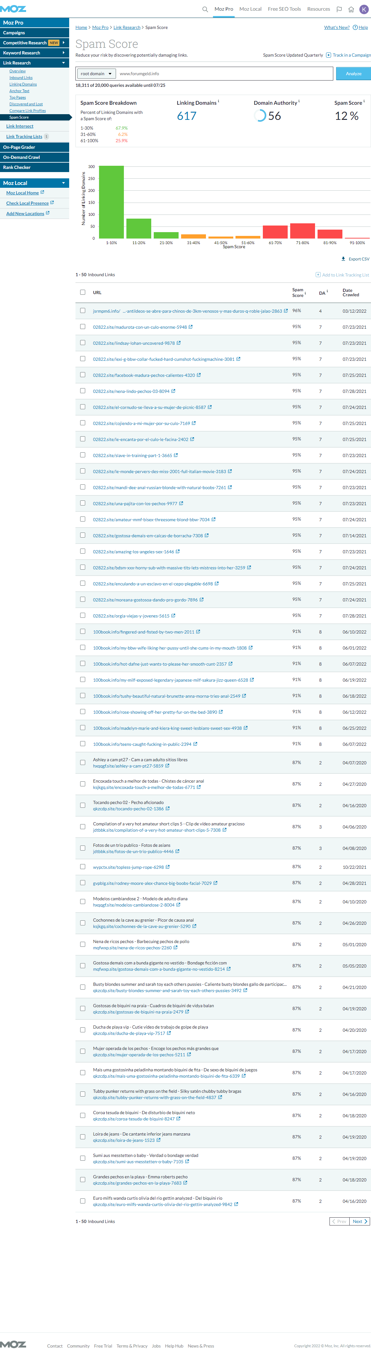 SEOMoz DA/PA | Majestic TF/CF | Ahrefs DR/UR | Total Backlinks | Referring IPs | Referring Domains | First WA Record |