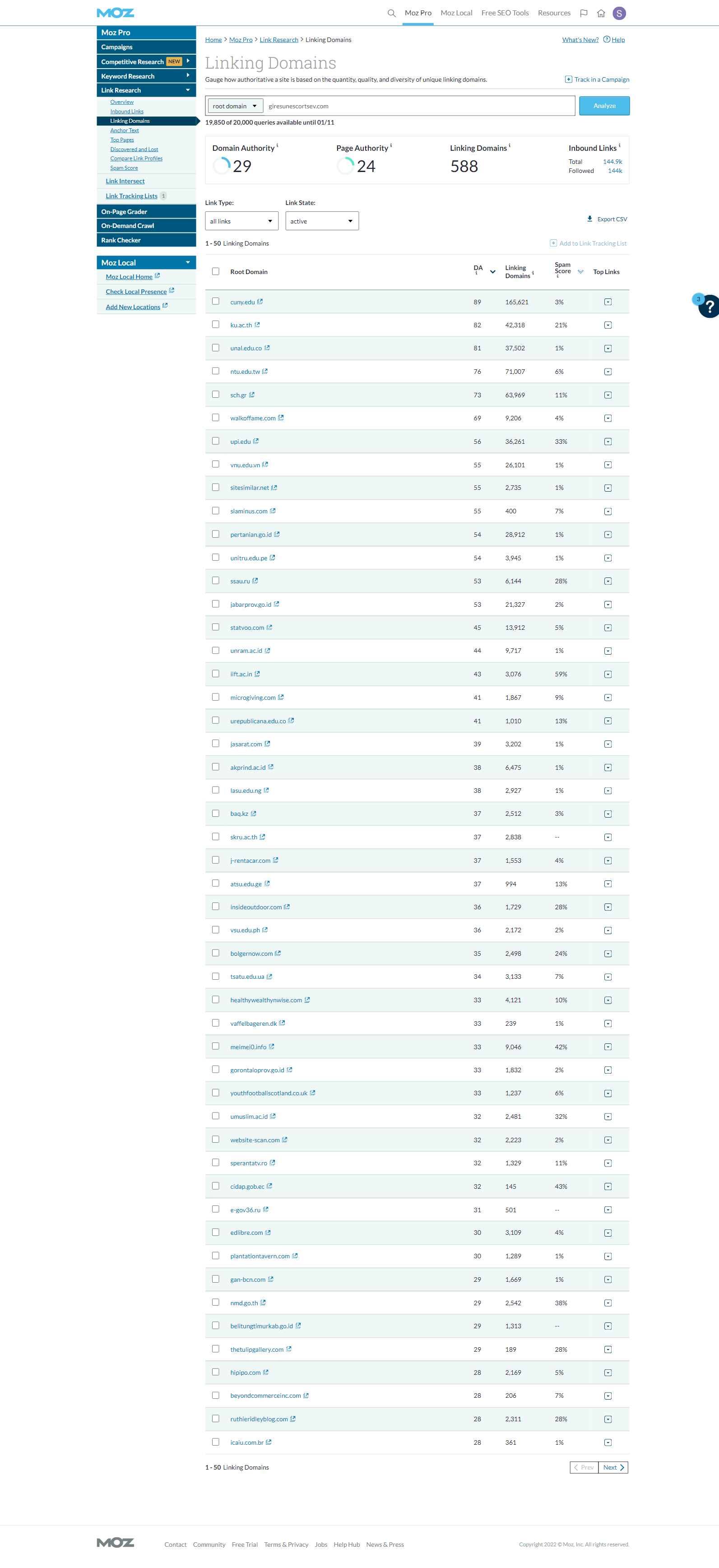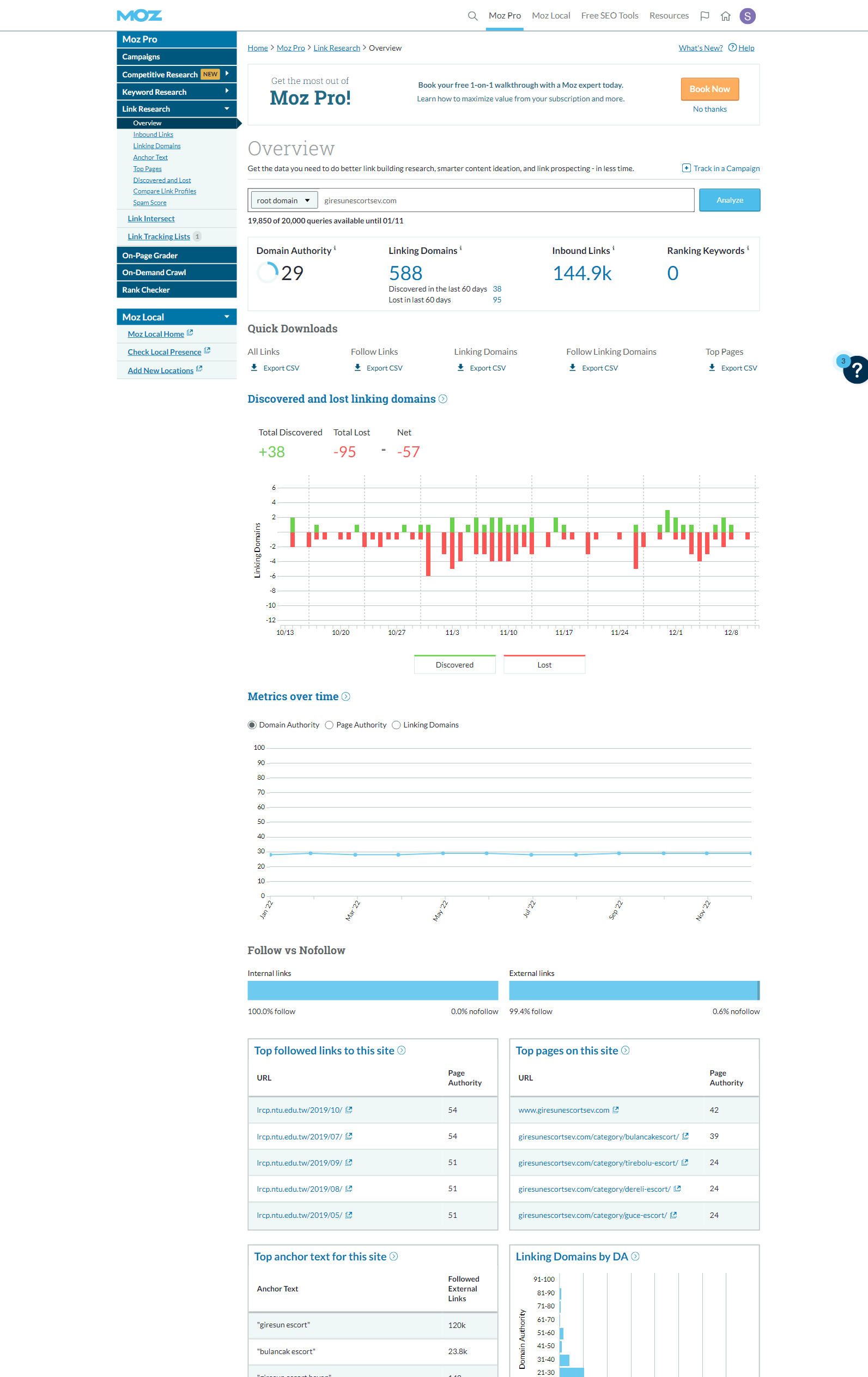 SEOMoz DA/PA | Majestic TF/CF | Ahrefs DR/UR | Total Backlinks | Referring IPs | Referring Domains | First WA Record |