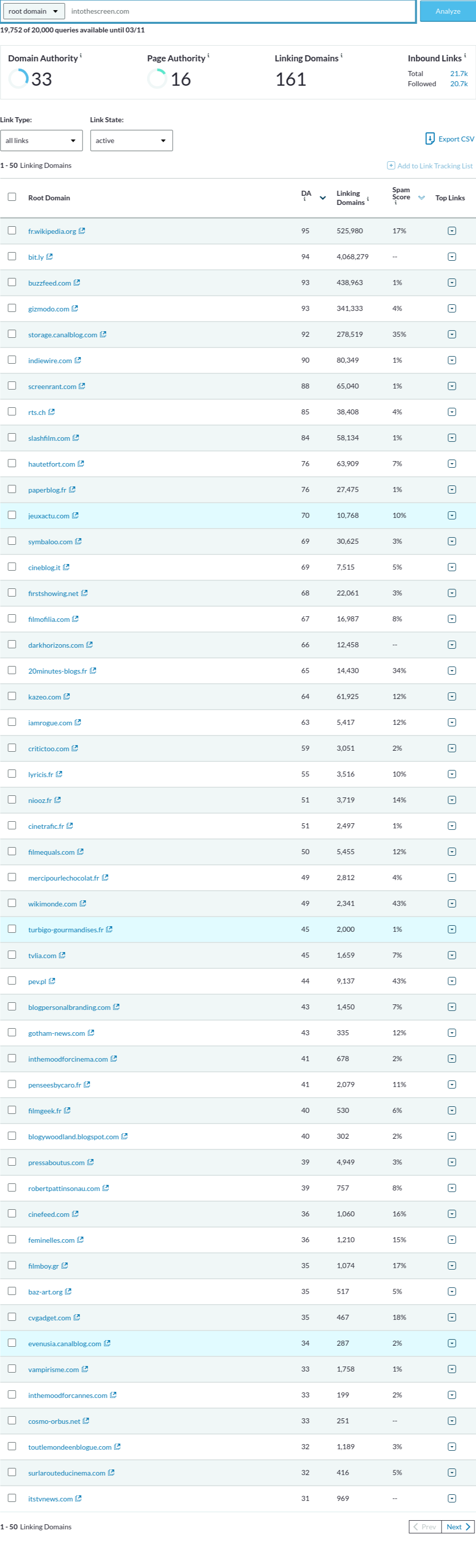 SEOMoz DA/PA | Majestic TF/CF | Ahrefs DR/UR | Total Backlinks | Referring IPs | Referring Domains | Trust BL | First WA Record |