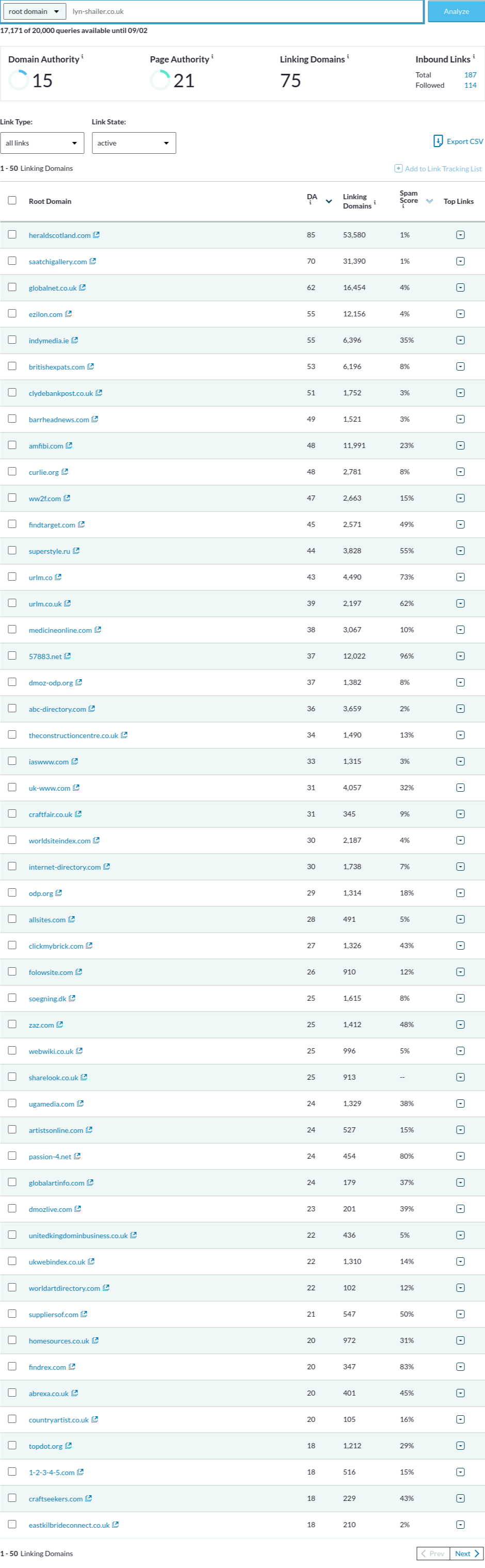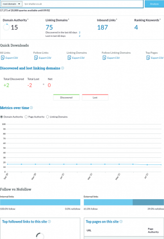 | SEOMoz DA/PA | Majestic TF/CF | Ahrefs DR/UR | Total Backlinks | Referring IPs | Referring Domains | Trust BL | First WA Record |