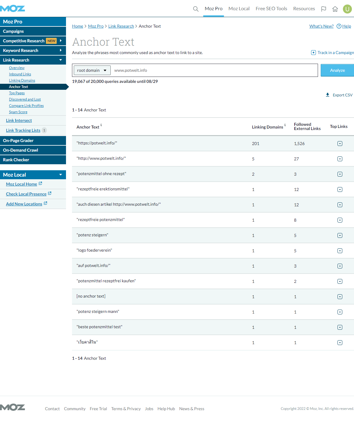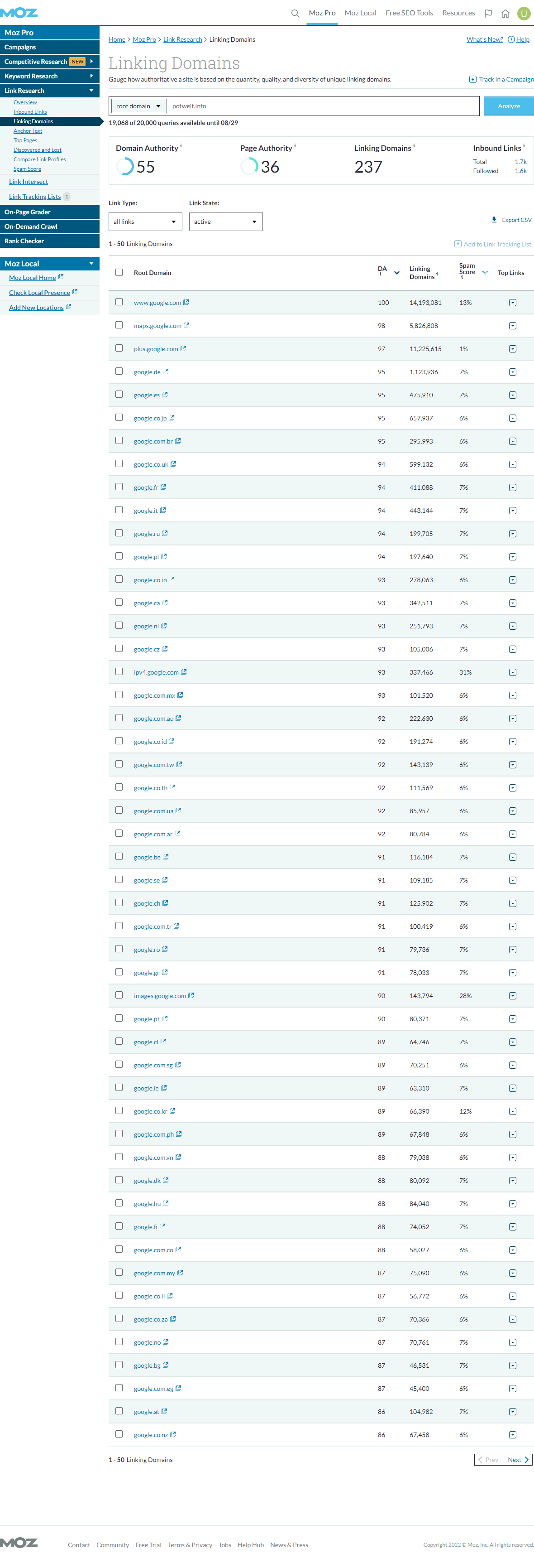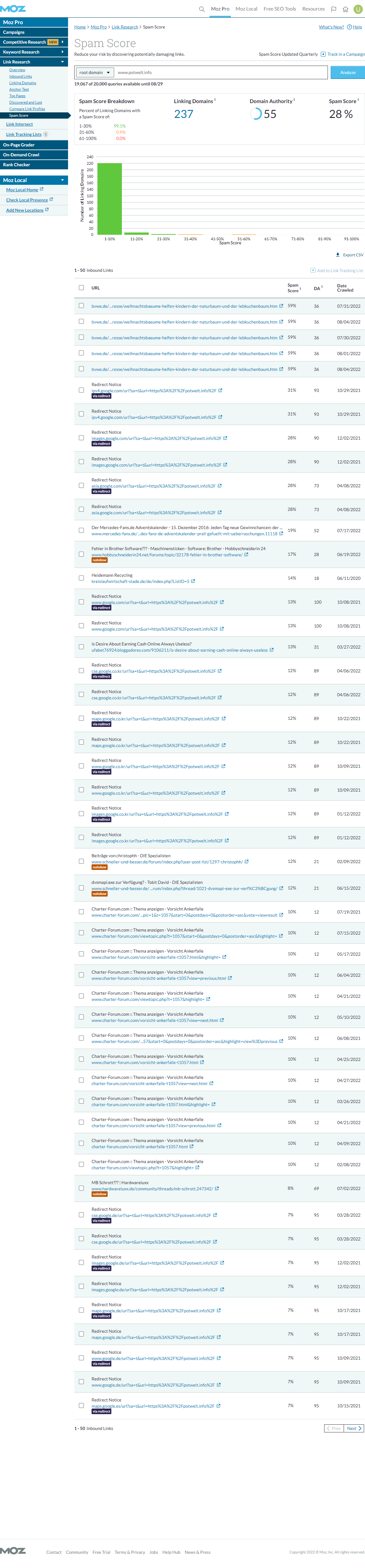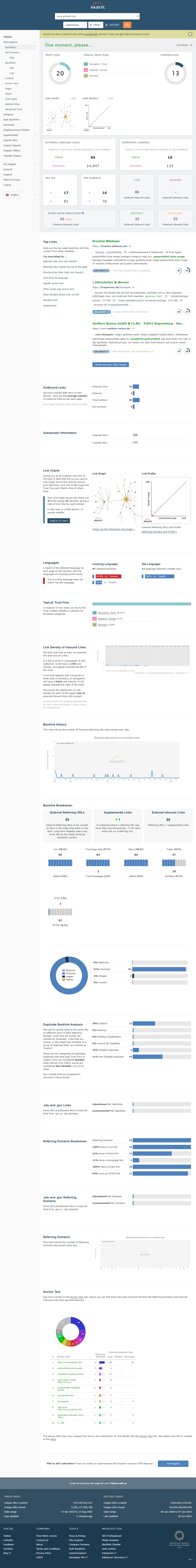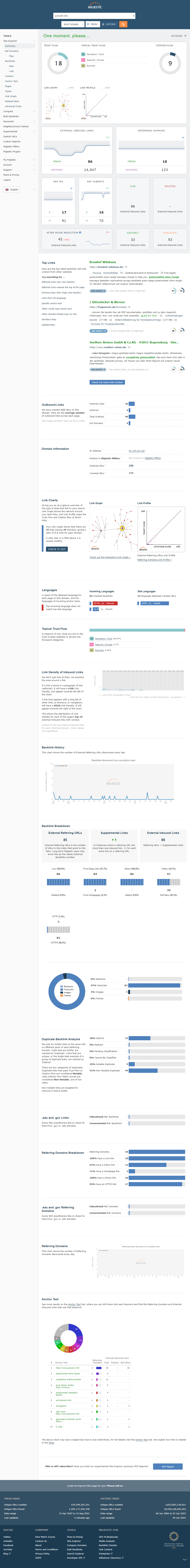 SEOMoz DA/PA | Majestic TF/CF | Ahrefs DR/UR | Total Backlinks | Referring IPs | Referring Domains | First WA Record |