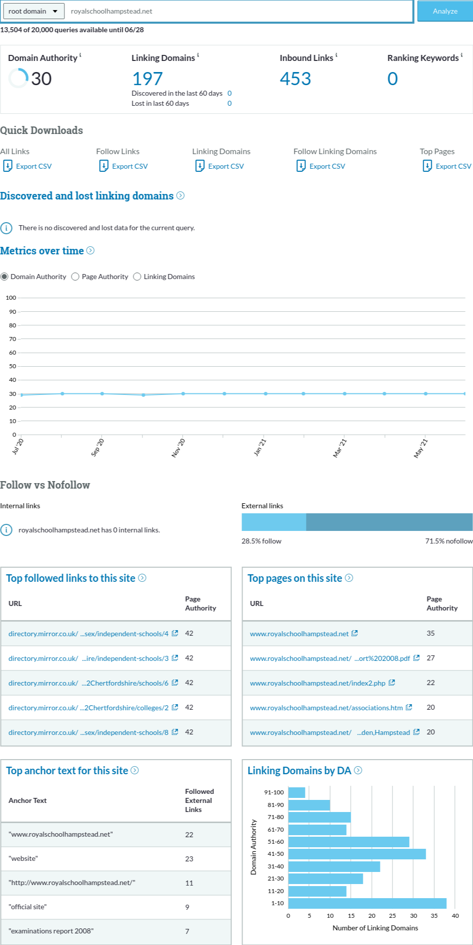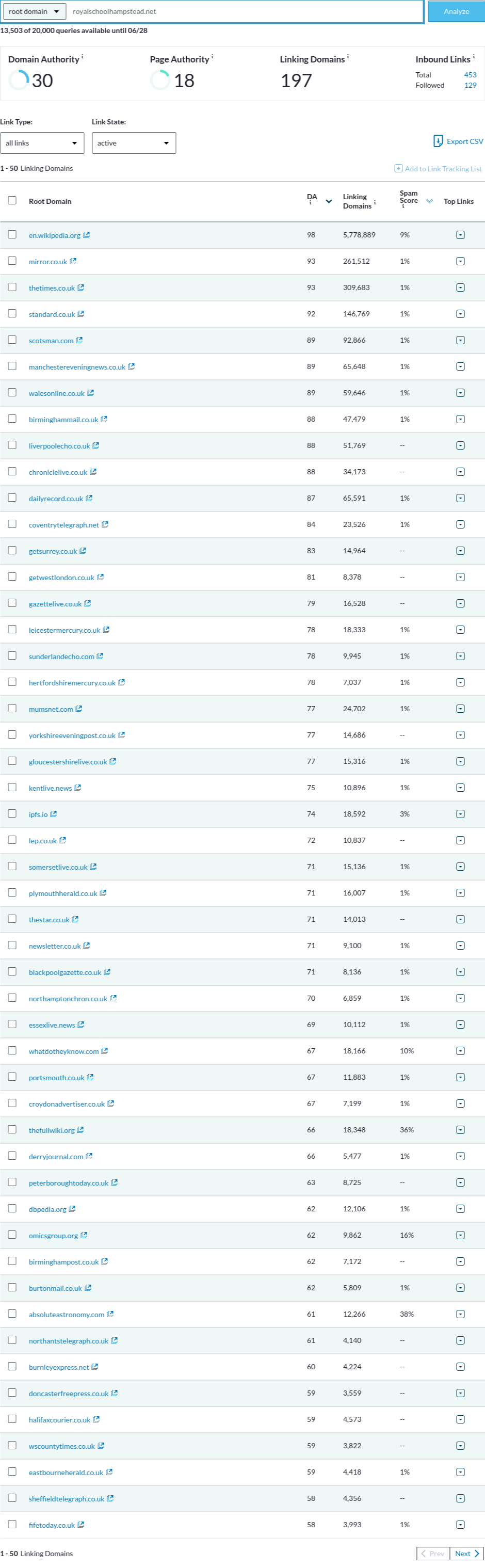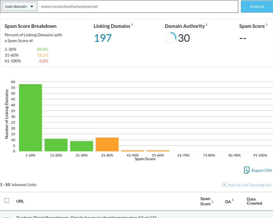 SEOMoz DA/PA | Majestic TF/CF | Ahrefs DR/UR | Total Backlinks | Referring IPs | Referring Domains | Trust BL | First WA Record |