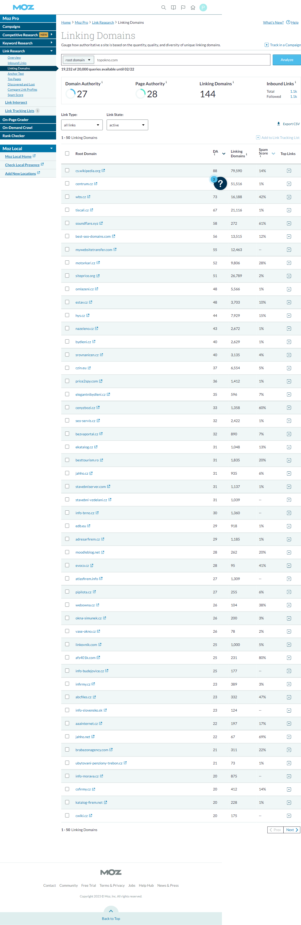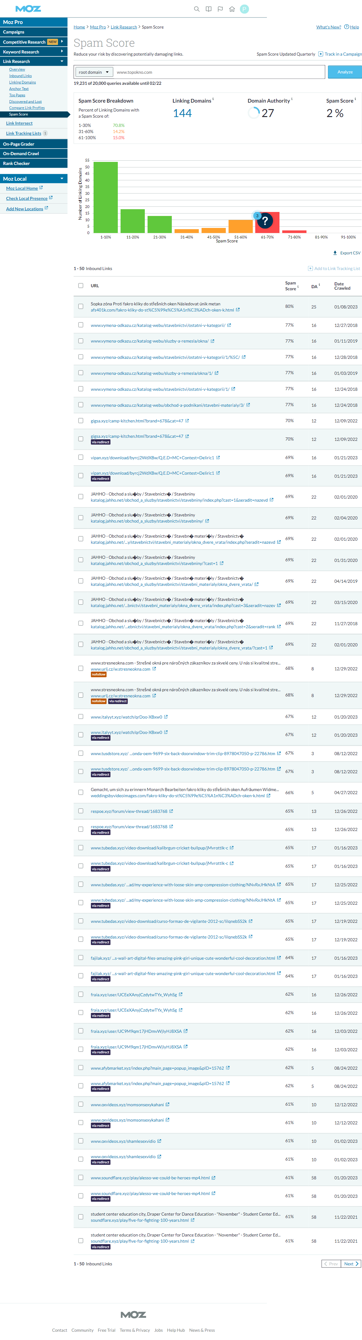 SEOMoz DA/PA | Majestic TF/CF | Ahrefs DR/UR | Total Backlinks | Referring IPs | Referring Domains | First WA Record |