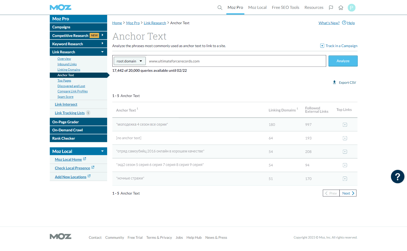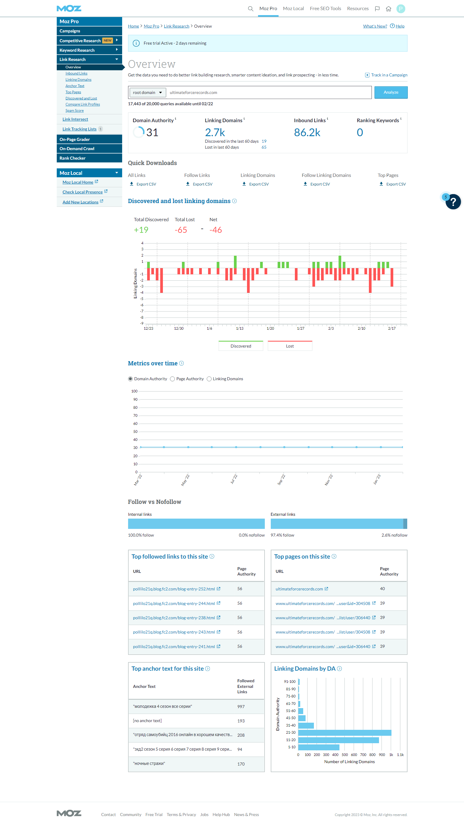 | SEOMoz DA/PA | Majestic TF/CF | Ahrefs DR/UR | Total Backlinks | Referring IPs | Referring Domains | Trust BL | First WA Record |