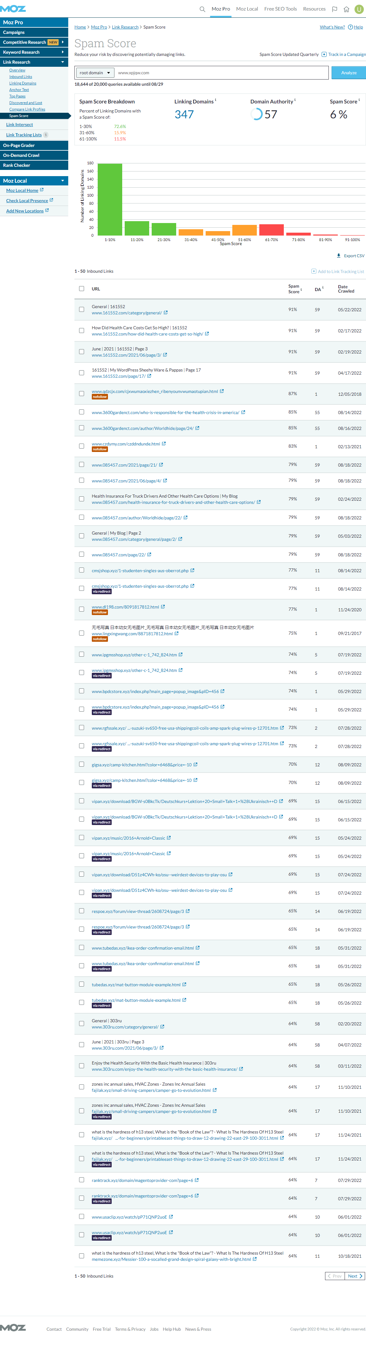 SEOMoz DA/PA | Majestic TF/CF | Ahrefs DR/UR | Total Backlinks | Referring IPs | Referring Domains | First WA Record |