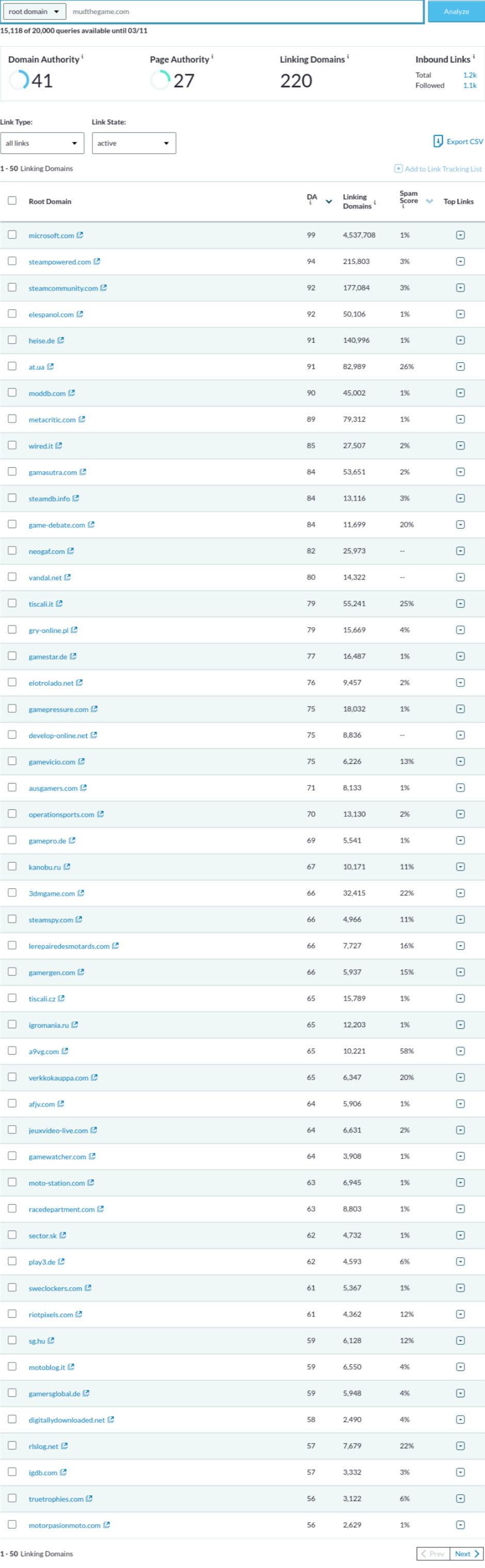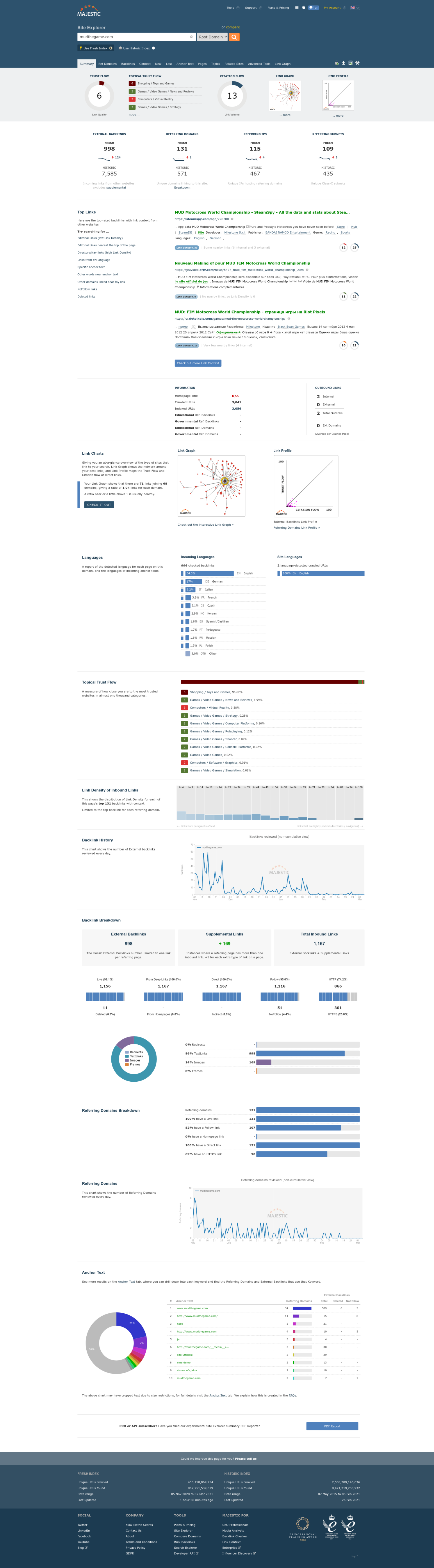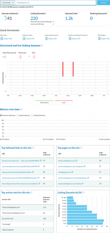 SEOMoz DA/PA | Majestic TF/CF | Ahrefs DR/UR | Total Backlinks | Referring IPs | Referring Domains | First WA Record |