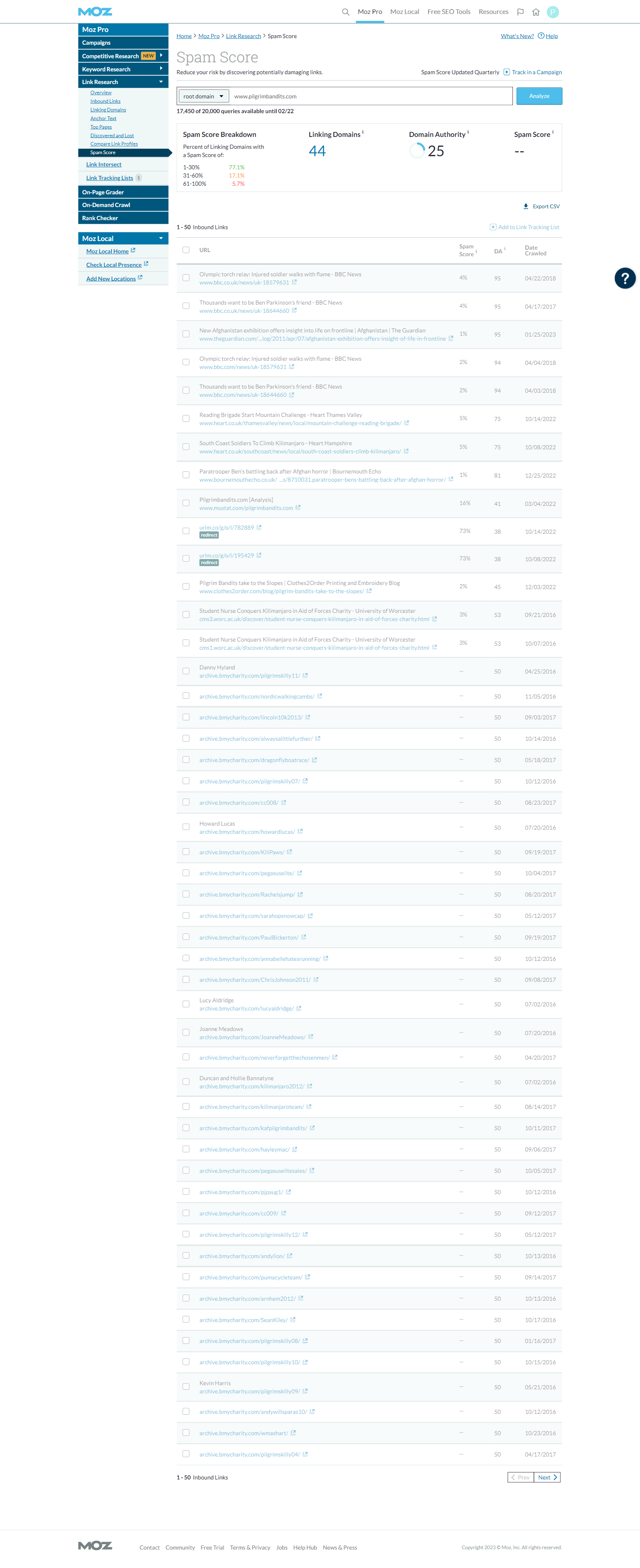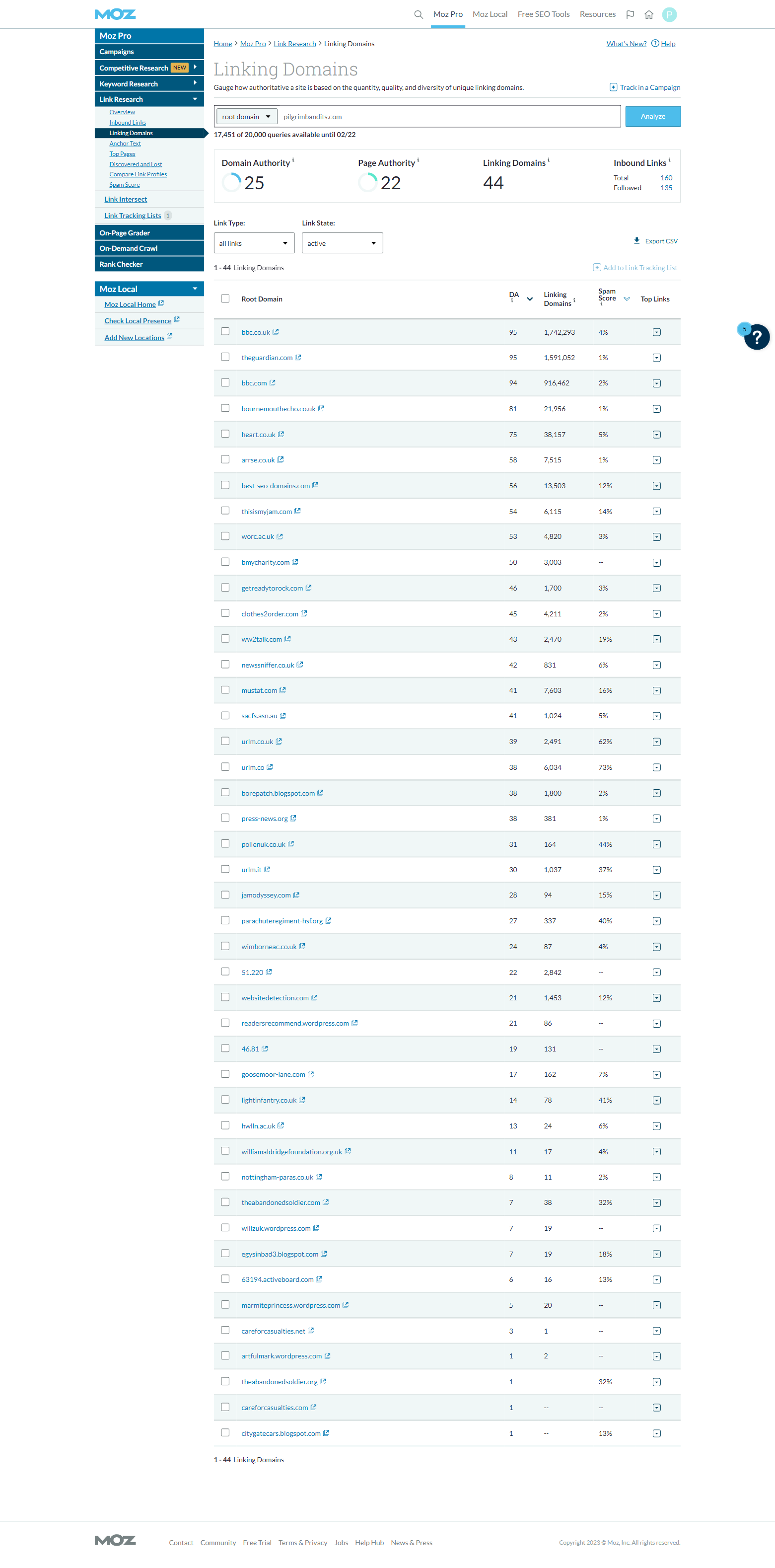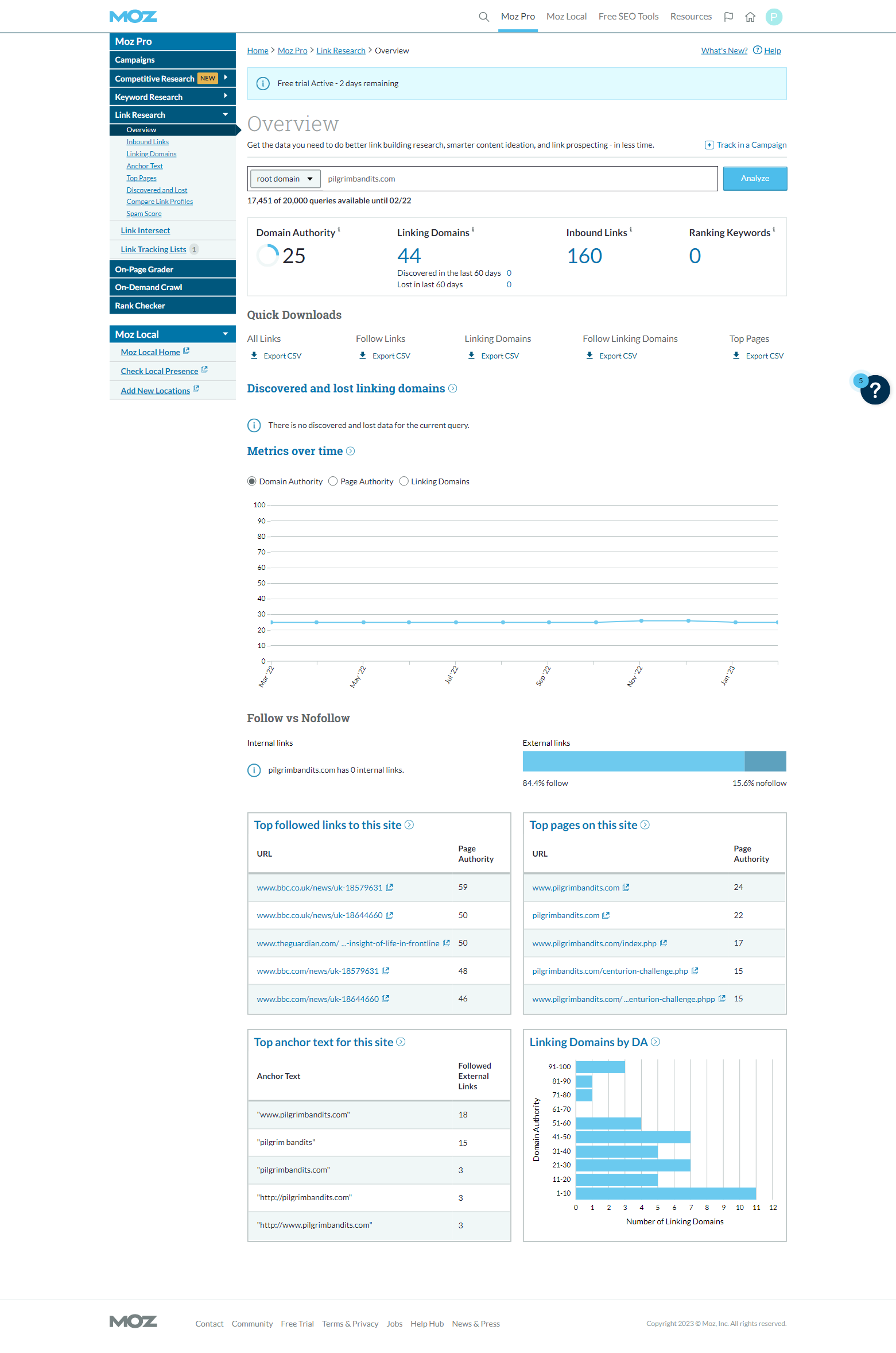 SEOMoz DA/PA | Majestic TF/CF | Ahrefs DR/UR | Total Backlinks | Referring IPs | Referring Domains | Trust BL | First WA Record |